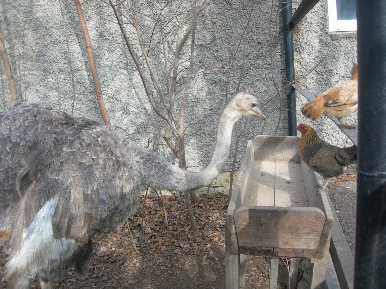 поспевшие плоды, взлетают на деревья, залетают в кормушки страусов..